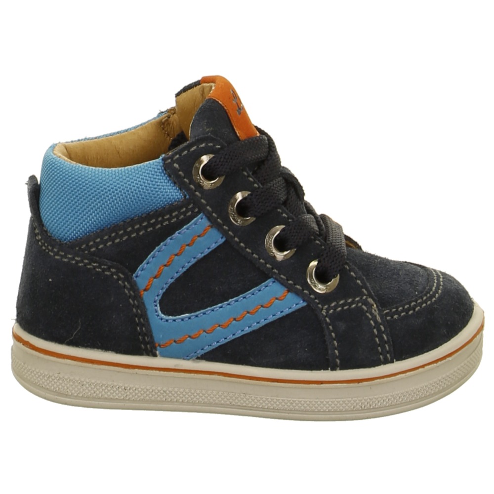 Celoroční dětská obuv německé značky Lurchi. Kvalitní kotníkové boty vyrobené z přírodní broušené kůže. Předností je vyjímatelná, kožená, anatomicky tvarovaná stélka, usnaňující průběžnou kontrolu velikosti. Podešev je velmi lehká a flexibilní, zajišťující pohodlné nošení. Obuv je vhodná na vyšší nárty. Vázání na tkaničku umožní správné dotažení obuvi.
